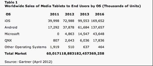 平板电脑:近日,市场分析公司Gartner在一份分析报告中预测,2012年全年的平板电脑销售数量将会比2011年的6000万台提高98%,最终达到1.19亿台的历史新高。